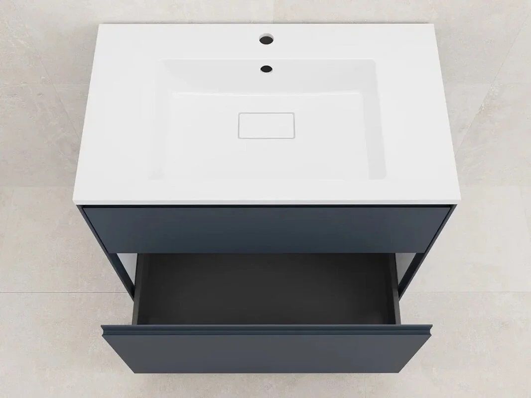 • Тумба имеет ширину 79,9 см, что делает её подходящей для стандартных ванных комнат.