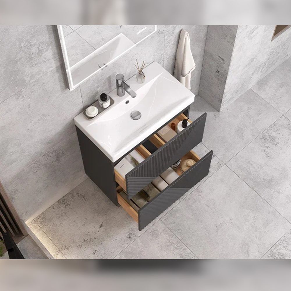 Тумба под раковину напольная Velvex Edge tn.EDG.9696.70.2Y графит, 70 см: 2 выдвижных ящика с механизмом открывания push-to-open.