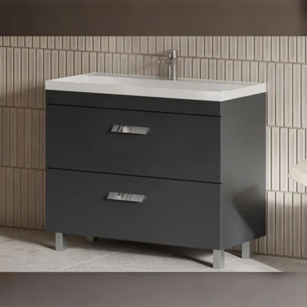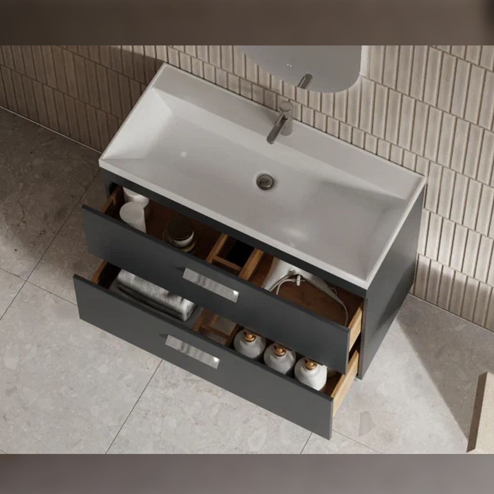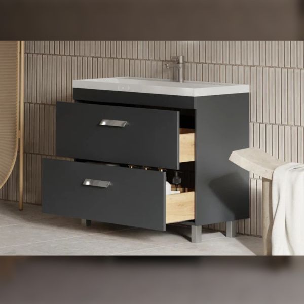 Тумба под раковину напольная Velvex Orlando tn.ORL.CLA.100.2Y графит, 100 см: 2 выдвижных ящика с механизмом плавного закрывания.