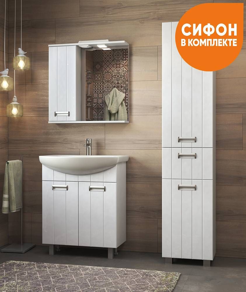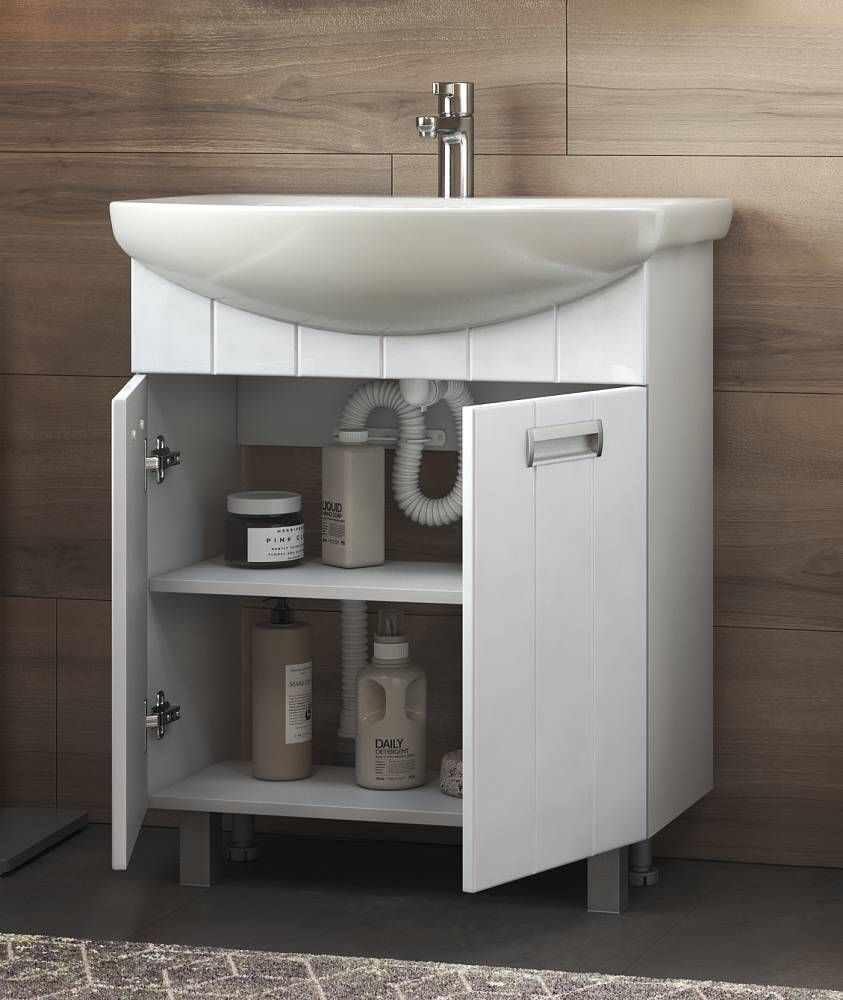 2 дверцы; 1 полка ЛДСП; ручка врезная металлическая хромированная, опоры квадратные регулируемые.Специальный сифон Vigo в комплектеМатериал корпуса: влагостойкая ЛДСПМатериал фасадов: ЛМДФПокрытие: пленка ПВХДверцы: петли с механизмом плавного закрыванияЯщики: направляющие полного выдвижения.
