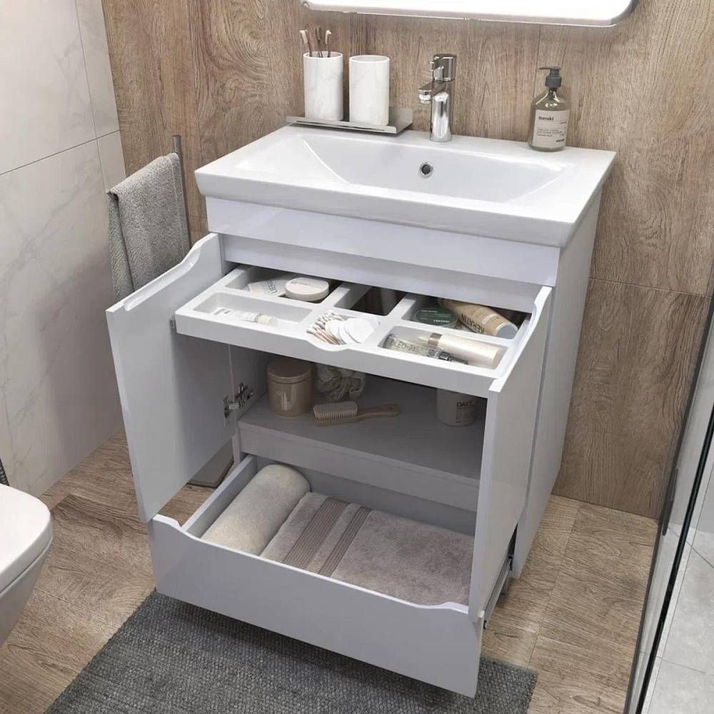 Тумба под раковину напольная VIGO Grani 285, 70 см. Гарантийный срок 2 года. Монтаж: напольный. Доводчик: да. Нажимной механизм: нет.