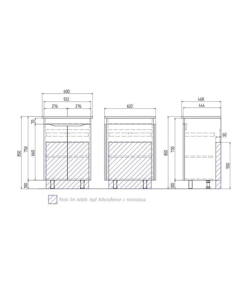 Тумба под раковину напольная Vigo Grani tn.GRI.ELI.60.2D 60 см белый