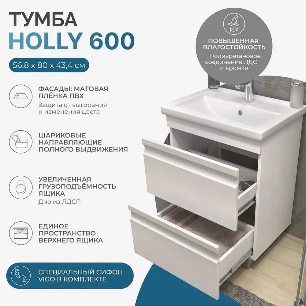 Тумба под раковину напольная VIGO Holly 039, 60 см.Гарантийный срок 2 года.Монтаж: напольный.Дов... Подробнее