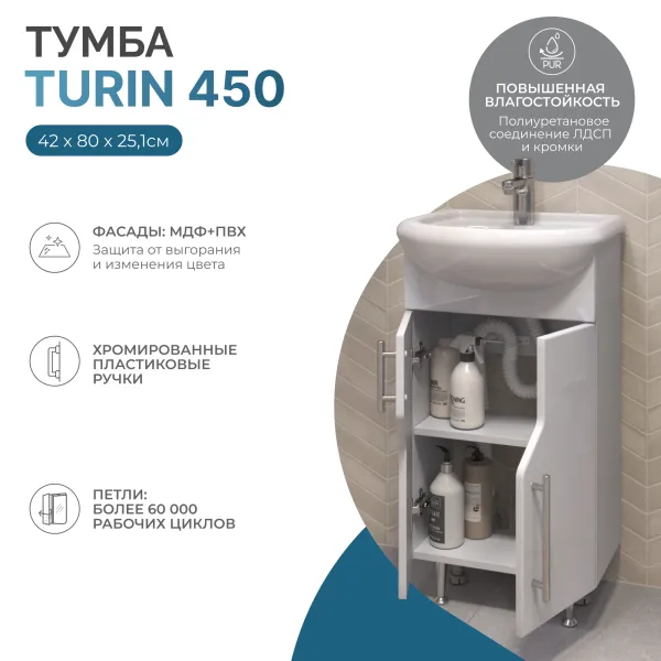 Тумба под раковину напольная Vigo Turin 223 45 см поставляется в разобранном виде белый купить