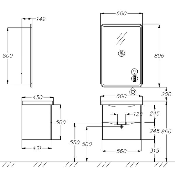 Габариты корпуса тумбы (ШхВхГ): 560х500х431 мм.