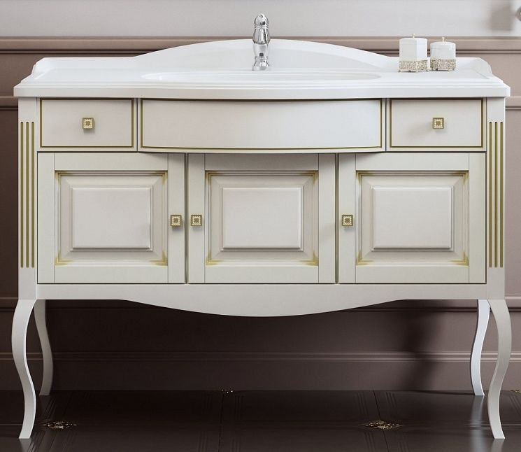 Тумба под раковину Opadiris Лаура Z0000009324 Белая матовая с золотой патиной ручки Swarovski Золото купить