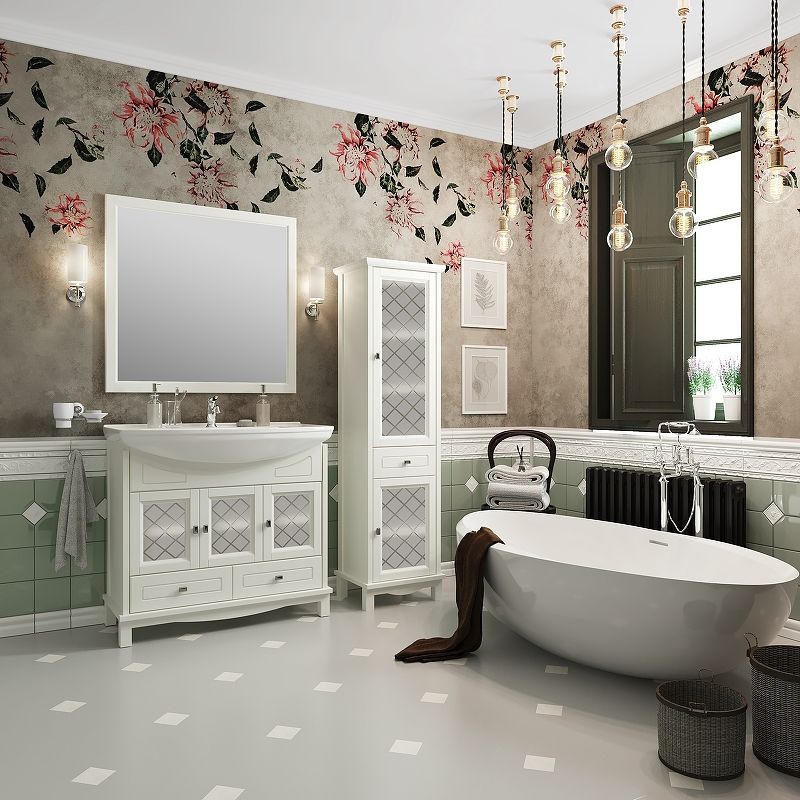 Тумба под раковину Opadiris Омега 85 00-00002824. Элегантные и лаконичные формы изделия идеально впишутся в любой интерьер в стиле прованс. Фасадные элементы украшены оригинальными ромбовидными узорами стеклянных витражей.Характеристики:Цвет: слоновая кость.