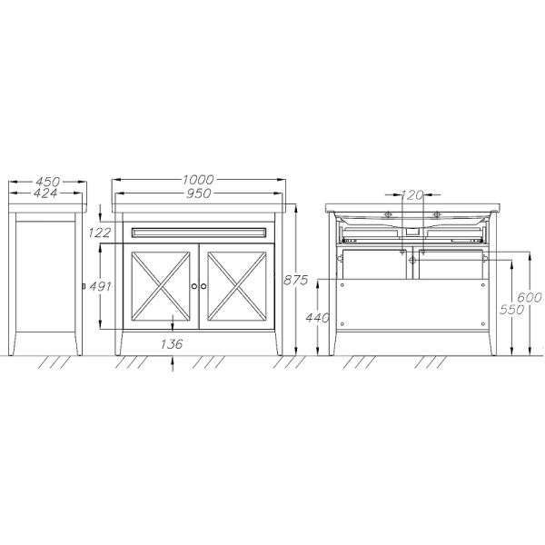 Габариты корпуса тумбы (ШхВхГ): 950х875х424 мм.
