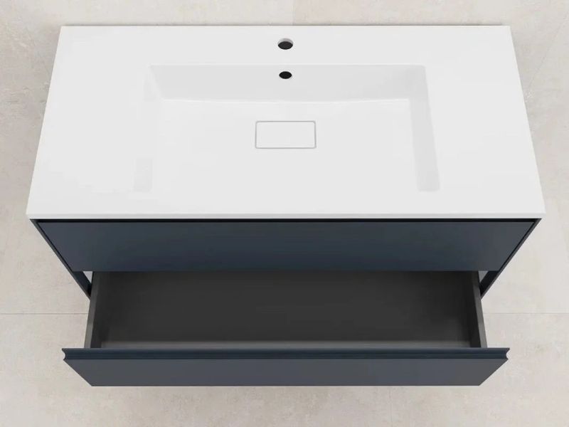 - Тумба имеет ширину 99,9 см, что делает её подходящей для стандартных ванных комнат.