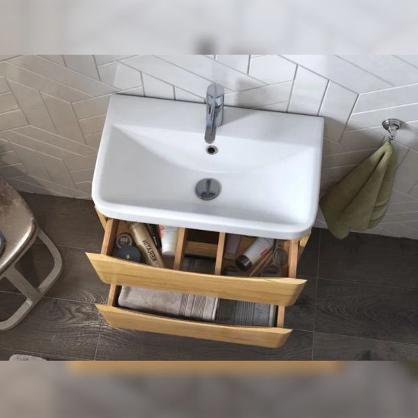 Тумба под раковину подвесная Velvex Clay tp.CLA.9595.60.2Y дуб верона, 60 см: 2 выдвижных ящика с механизмом плавного закрывания.