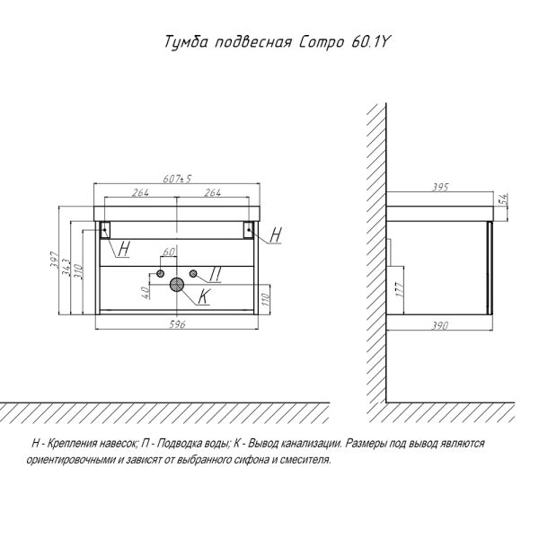 Тумба под раковину подвесная Velvex Compo tp.COM.9696.60.1Y белый глянец, 60 см