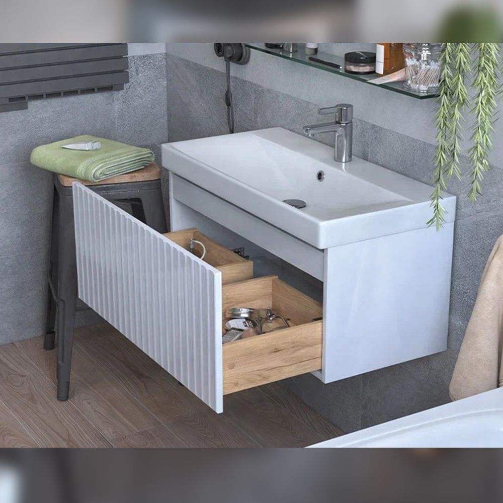 Тумба под раковину подвесная Velvex Compo tp.COM.9696.80.1Y белый глянец, 80 см: 1 выдвижной ящик с механизмом открывания push-to-open.