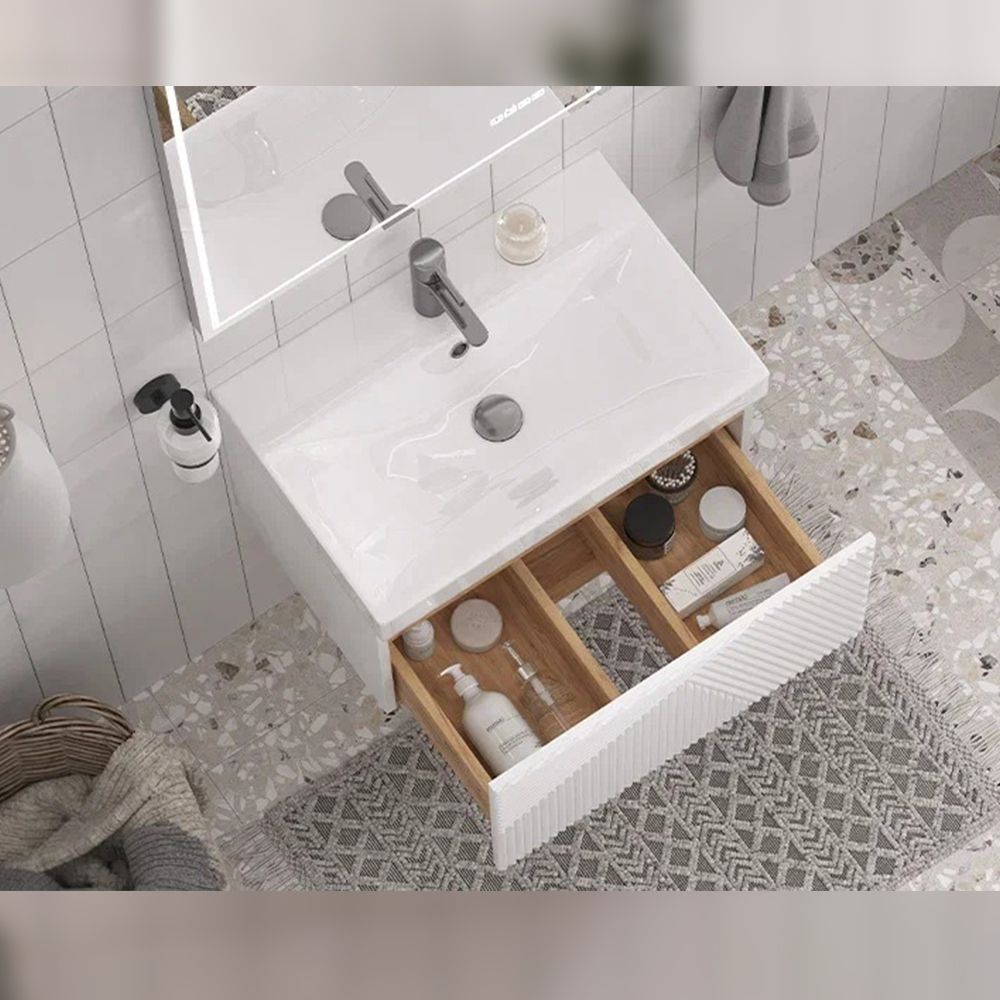 Тумба под раковину подвесная Velvex Edge tp.EDG.9696.60.1Y белый глянец, 60 см: 1 выдвижной ящик с механизмом открывания push-to-open.