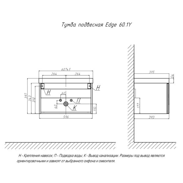 Тумба под раковину подвесная Velvex Edge tp.EDG.9696.60.1Y белый глянец, 60 см купить