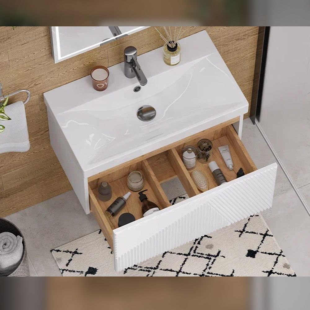 Тумба под раковину подвесная Velvex Edge tp.EDG.9696.70.1Y белый глянец, 70 см: 1 выдвижной ящик с механизмом открывания push-to-open.