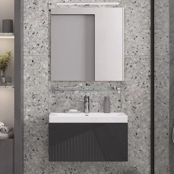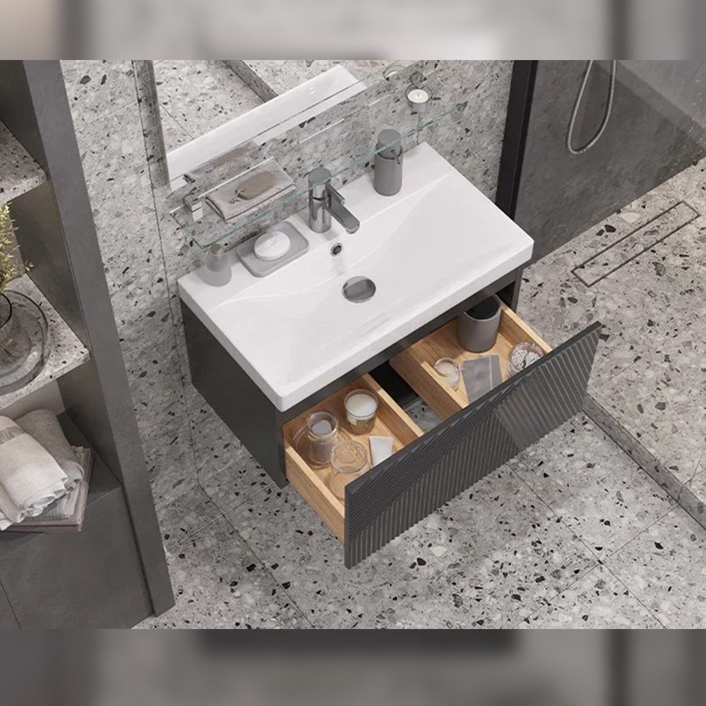Тумба под раковину подвесная Velvex Edge tp.EDG.9696.70.1Y графит, 70 см: 1 выдвижной ящик с механизмом открывания push-to-open.