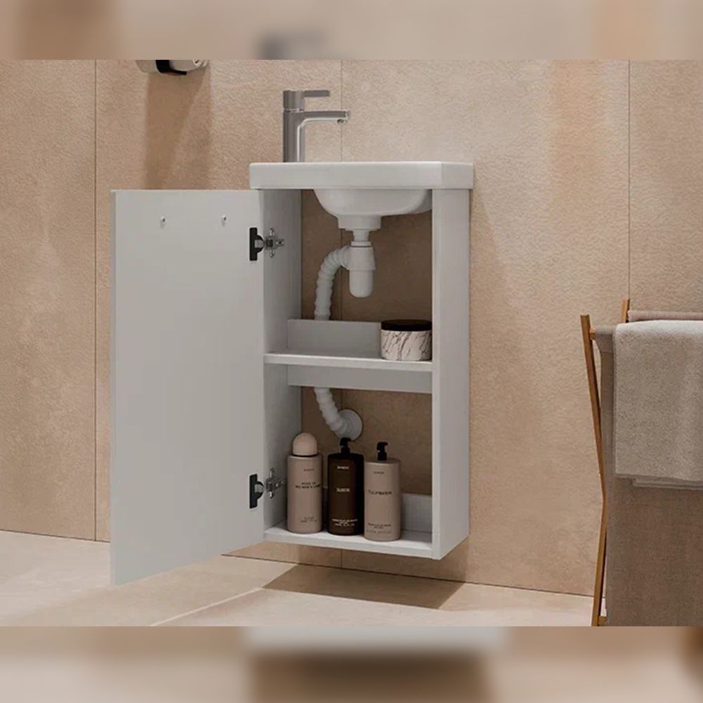 Тумба под раковину подвесная Velvex Estea tp.EST.MOD.40.1D, 40 см: 1 распашная дверца, петли с доводчиками, 1 полка из ЛДСП.