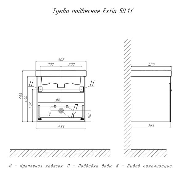 Тумба под раковину подвесная Velvex Estea tp.EST.MOD.50.1Y, 50 см купить