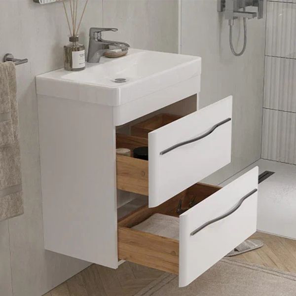 Тумба под раковину подвесная Velvex Jill tp.JIL.9595.60.2Y белый матовый, 60 см: 2 выдвижных ящика с механизмом плавного закрывания.