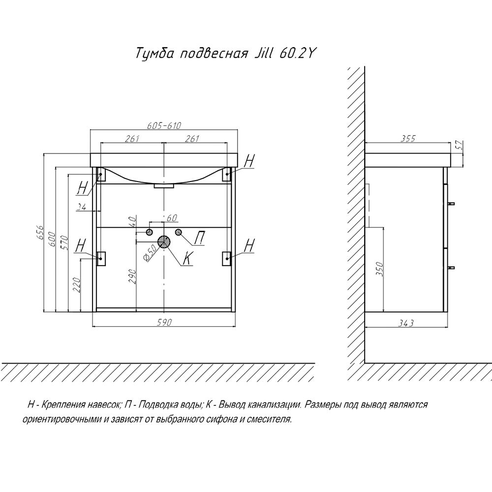 Тумба под раковину подвесная Velvex Jill tp.JIL.9595.60.2Y белый матовый, 60 см купить