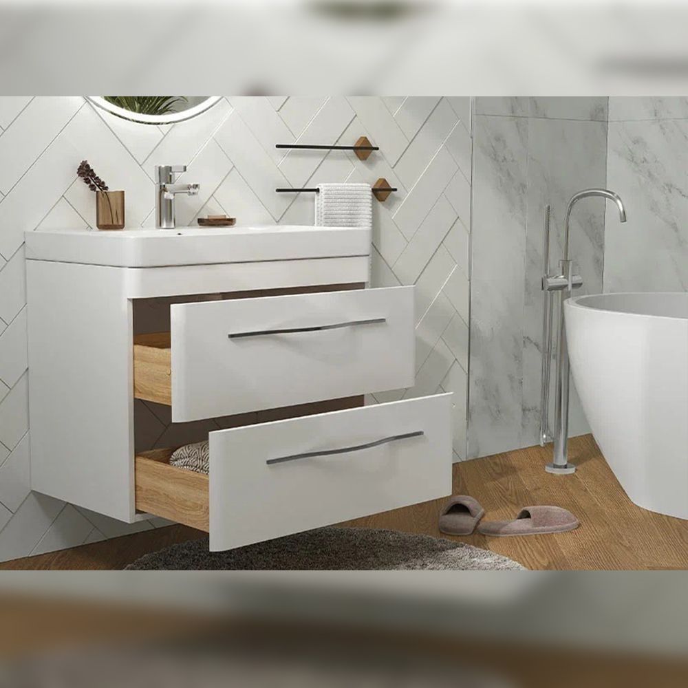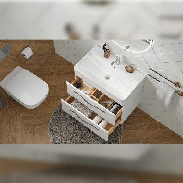 Тумба под раковину подвесная Velvex Jill tp.JIL.9595.80.2Y белый матовый, 80 см: 2 выдвижных ящика с механизмом плавного закрывания.