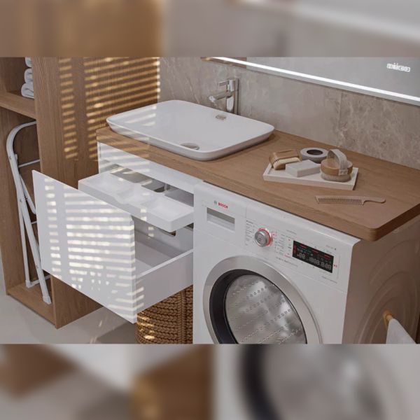 Тумба под раковину подвесная Velvex Klaufs tp.KLA.56.1Y, 55 см: 1 выдвижной ящик, выдвижной органайзер.