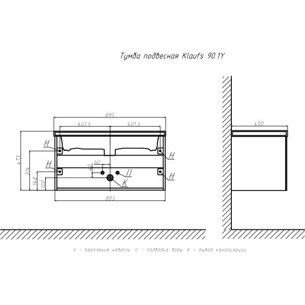 Тумба под раковину подвесная Velvex Klaufs tp.KLA.MAR.90.1Y, 90 см