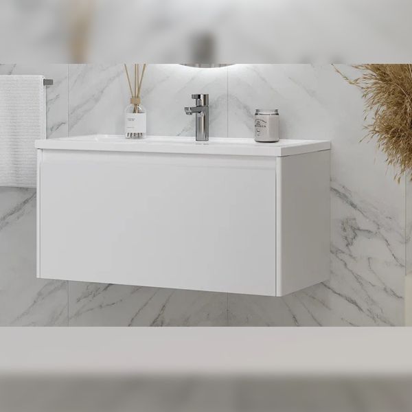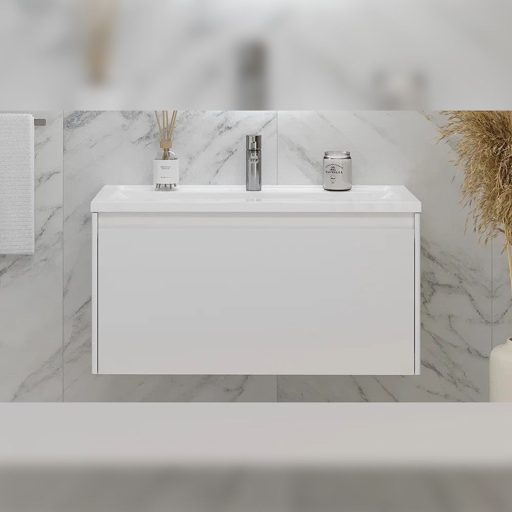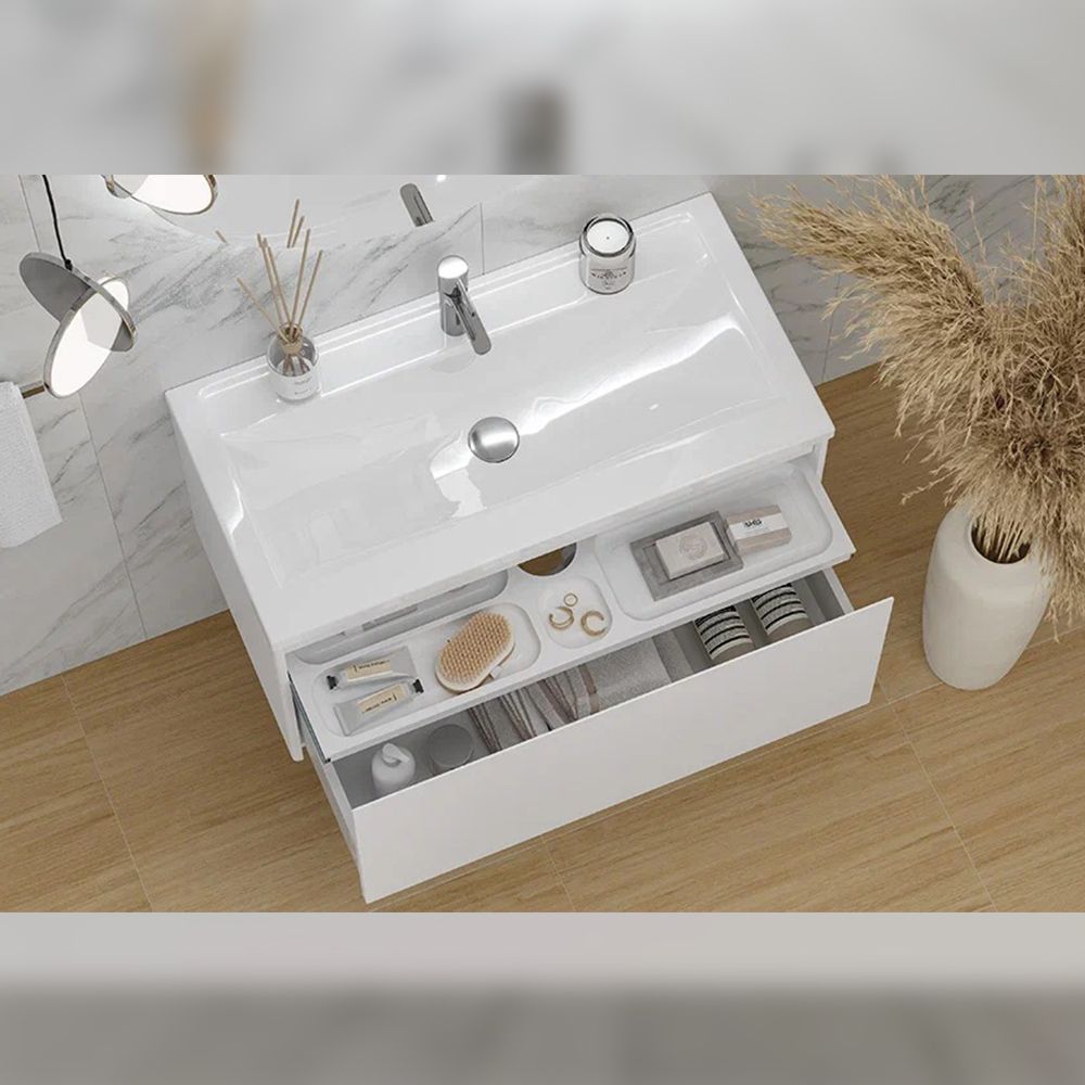 Тумба под раковину подвесная Velvex Klaufs tp.KLA.MAR.90.1Y, 90 см: 1 выдвижной ящик, выдвижной органайзер.