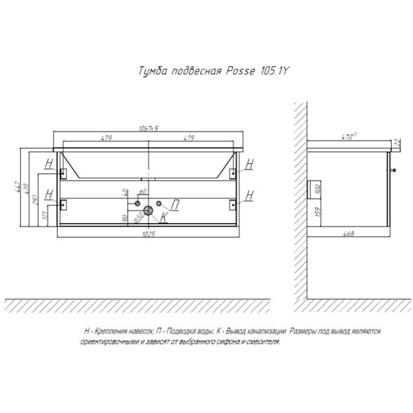 Тумба под раковину подвесная Velvex Posse tp.POS.OSK.105.1Y верде, 105 см купить
