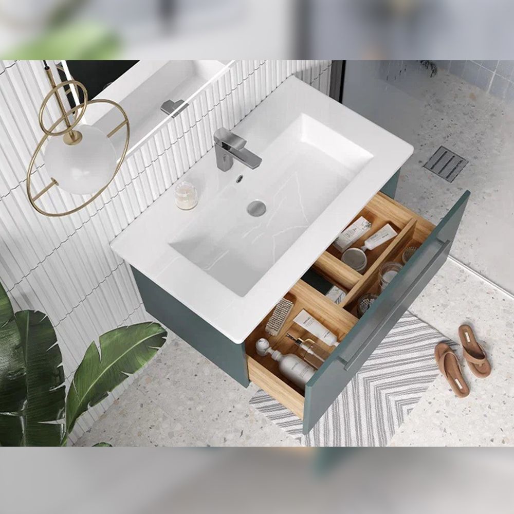 Тумба под раковину подвесная Velvex Posse tp.POS.OSK.85.1Y верде, 85 см: 1 выдвижной ящик с механизмом плавного закрывания.