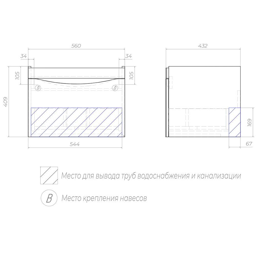 Тумба под раковину подвесная Velvex Vizo tpVIZ.60.1Y-21, 60 см