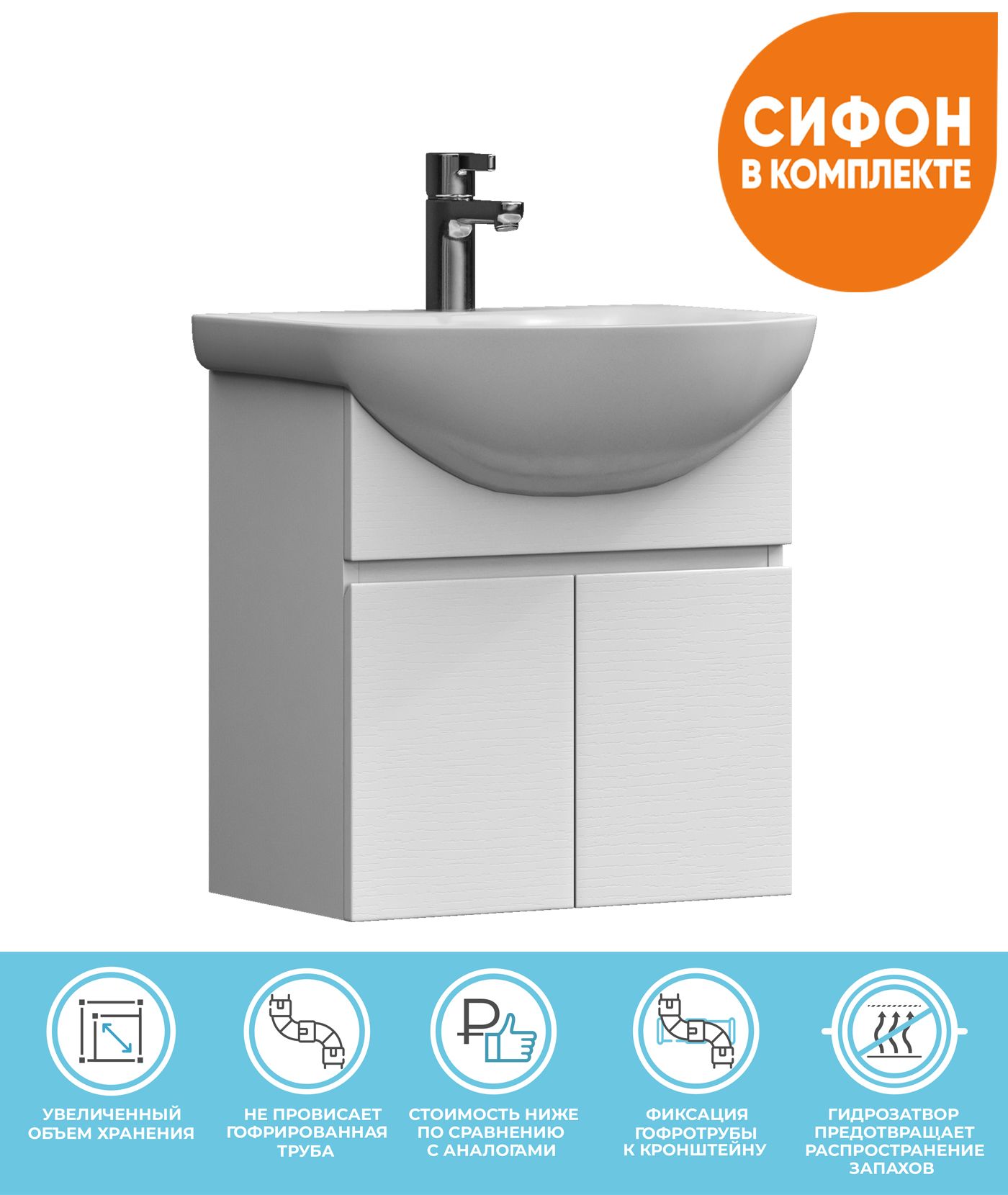 2 дверцы. Специальный сифон Vigo в комплекте.Материал корпуса и фасада: влагостойкая ЛДСПДверцы:... Подробнее