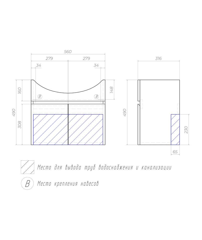 Тумба под раковину подвесная Vigo Wing tp.WIN.BAL.60.2D 60 см белый