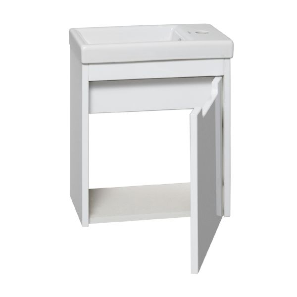 Тумба под умывальник подвесная с одним распашным фасадом, открывающимся слева направо (петли справа). Петли со встроенным доводчиком, навесы - 2шт.