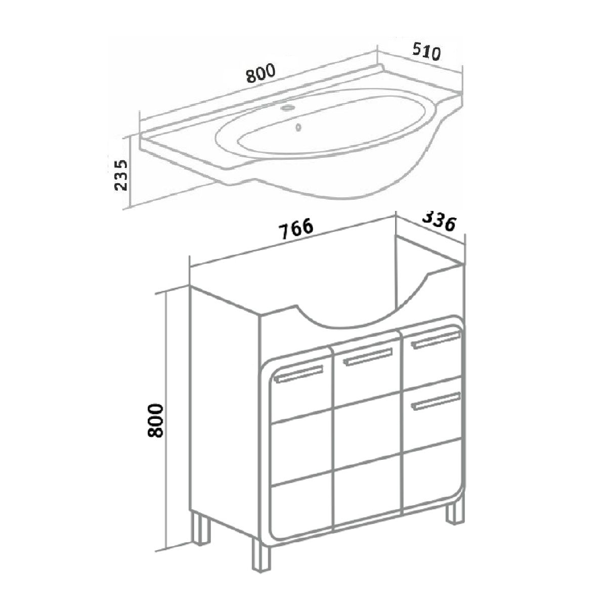 Тумба под раковину Runo (под умывальник Erica 80) Эрика 80 (УТ000003319)