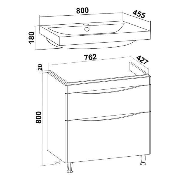 Тумба под раковину Runo (под умывальник Moduo 80 ) Афина 80 (00-00001170)