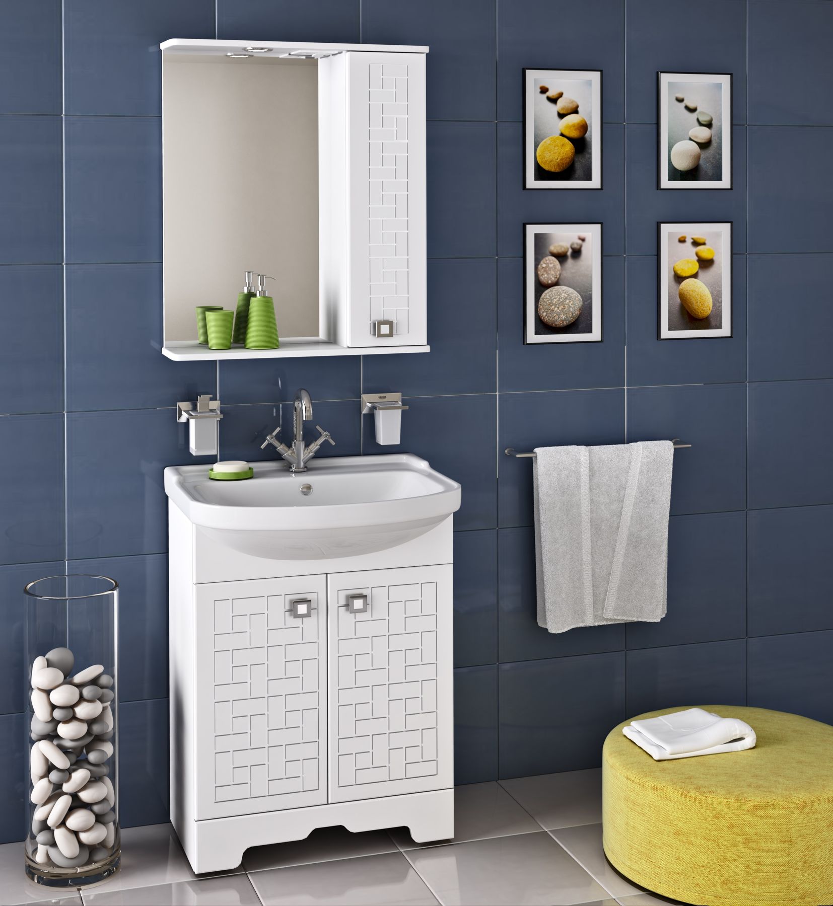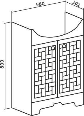 Тумба под умывальник напольная с двумя распашными фасадами и одной внутренней полкой. Петли со встроенным доводчиком, ручки - 2шт. Устанавливается на 4-е пластиковые опоры, которые скрыты за нижней фальшь-панелью.