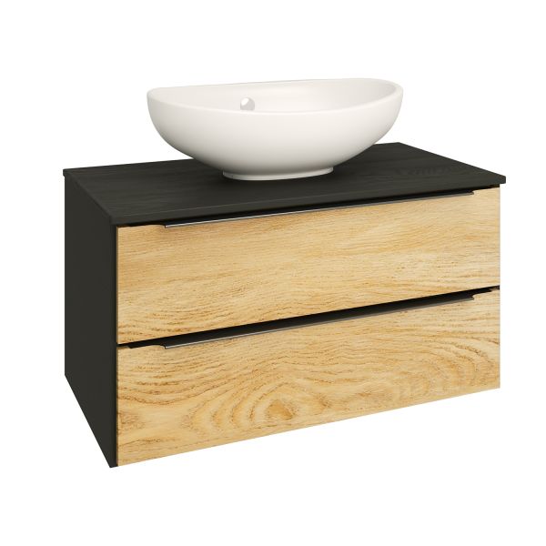 Тумба под раковину Runo подвесная дуб черный (под умывальник Moduo Square 50/ Гамма 56/ Infinity 85/ Moduo Leaf 55) Мальта 85 (00-00001099)