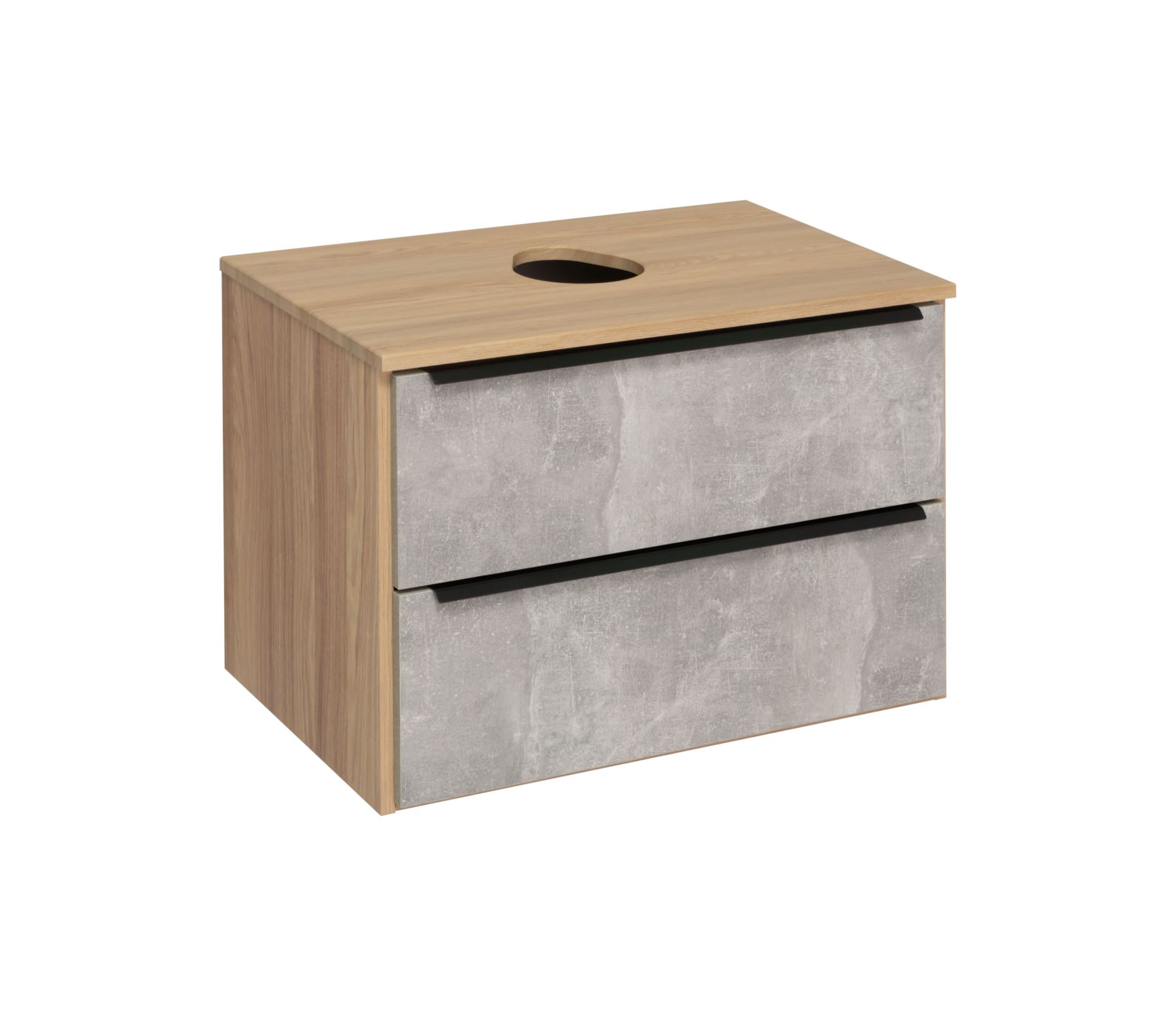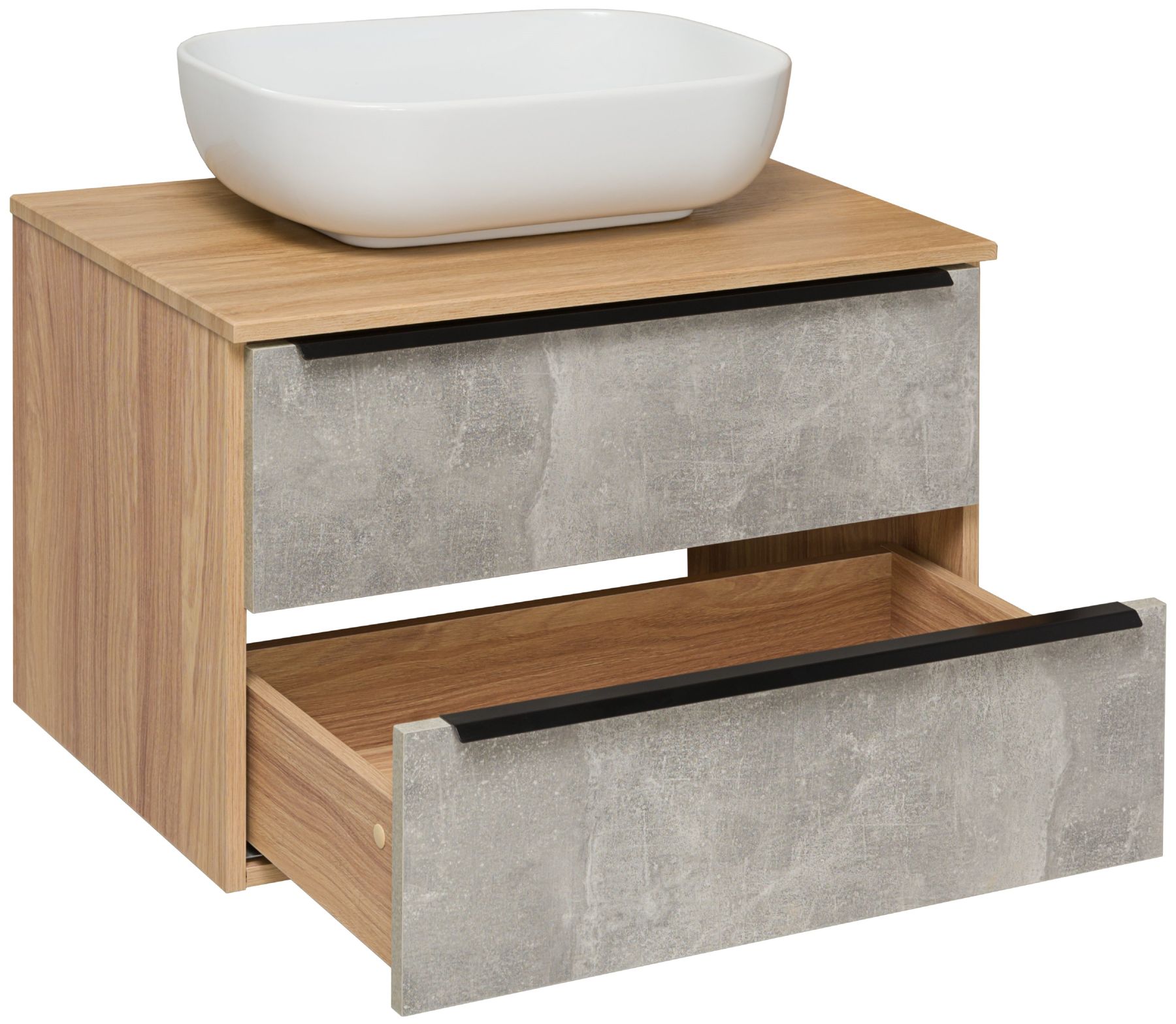 Подвесная тумба функционально состоит из двух ящиков на шариковых направляющих с механизмом плавного закрывания. Модуль может комплектоваться различными по размеру и дизайну накладными умывальниками. Мы предлагаем раковины известного европейского производителя Square 60,Moduo LEAF от Церсанита, Гамма 56 либо Infinity 65