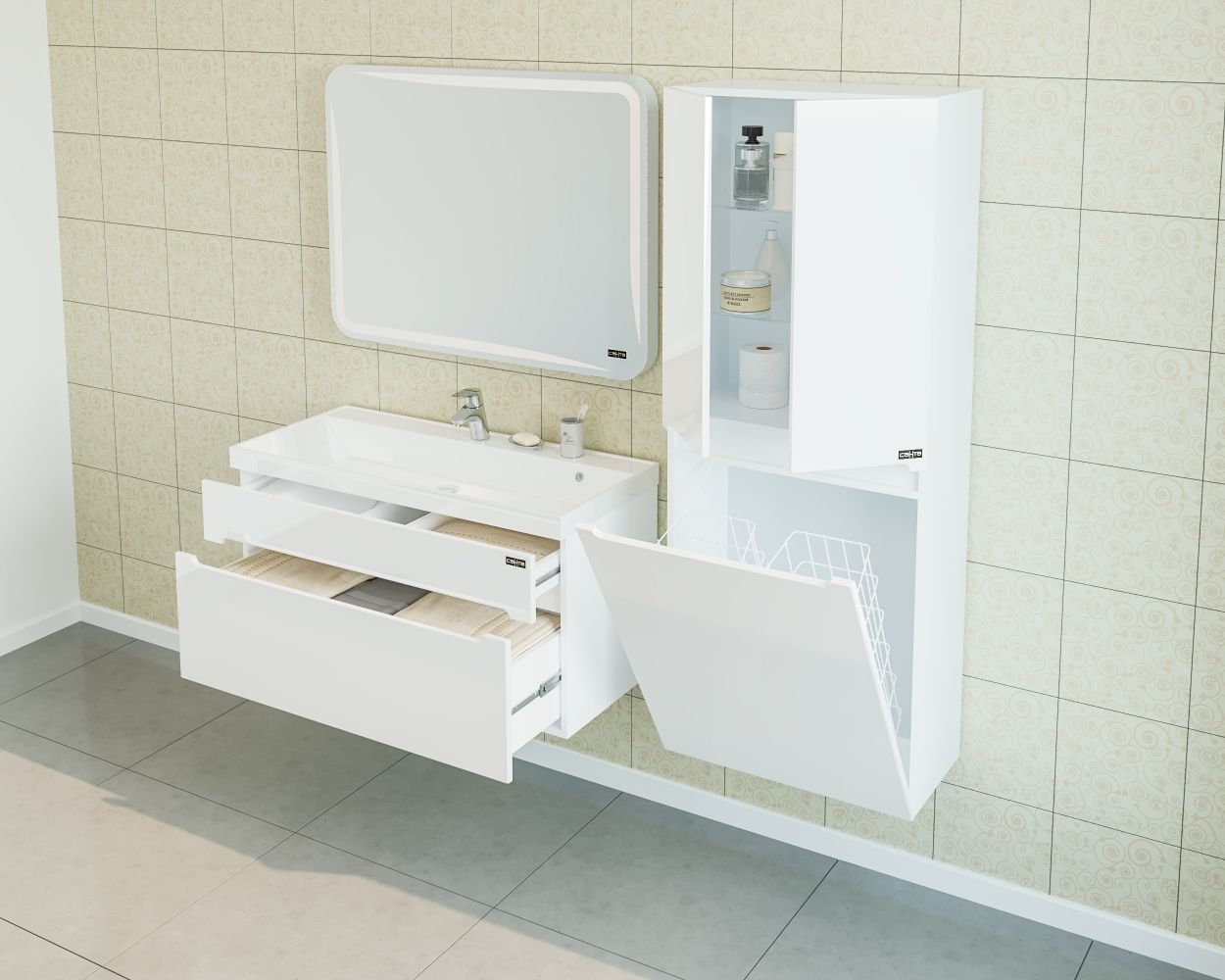 Тумба под раковину СанТа Лондон 224008л 100см белый
