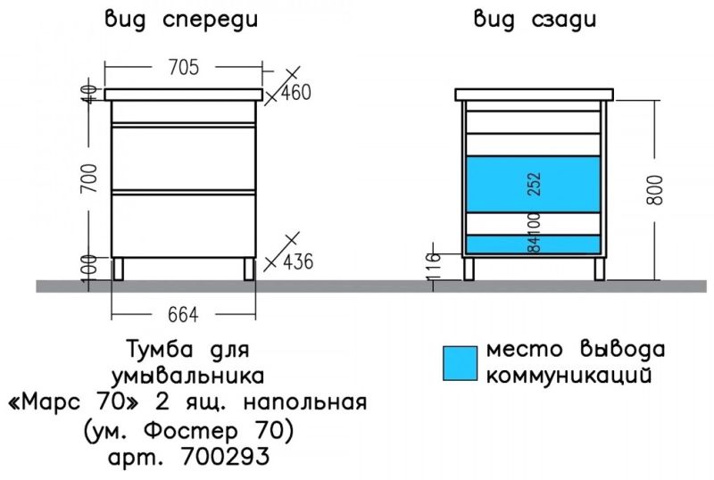 Тумба под раковину СанТа Марс 700293 70см белый купить