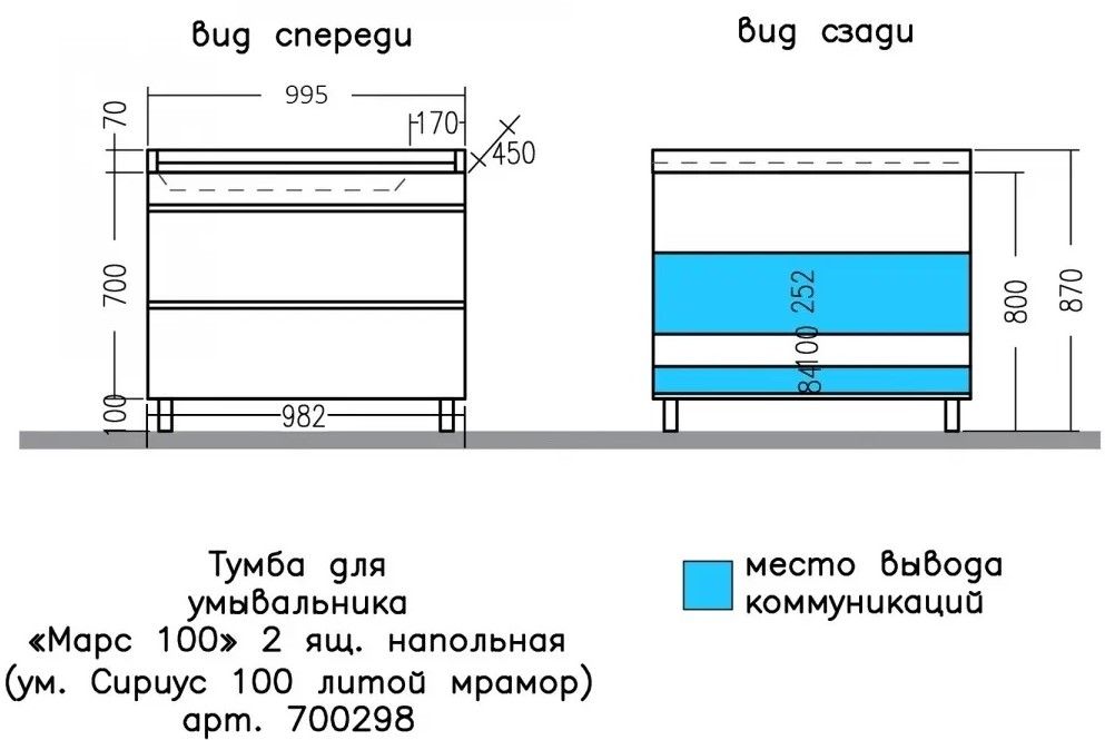 Тумба под раковину СанТа Марс 700298 100см белый купить
