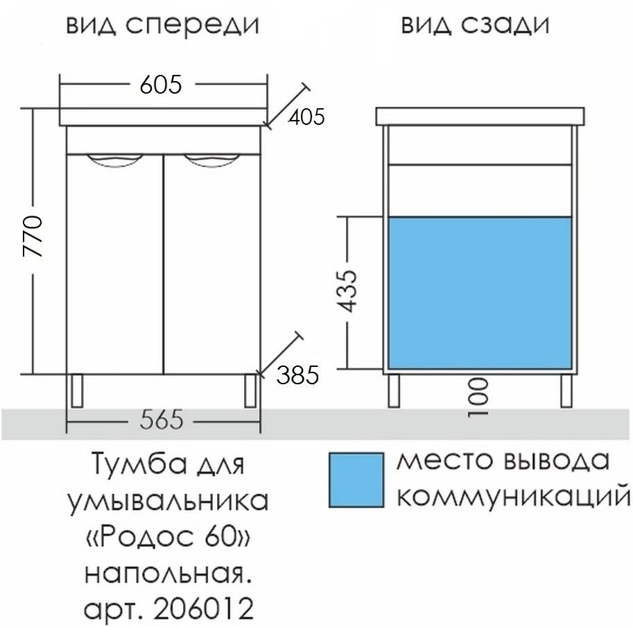 Тумба под раковину СанТа Родос 206012N 60см белый