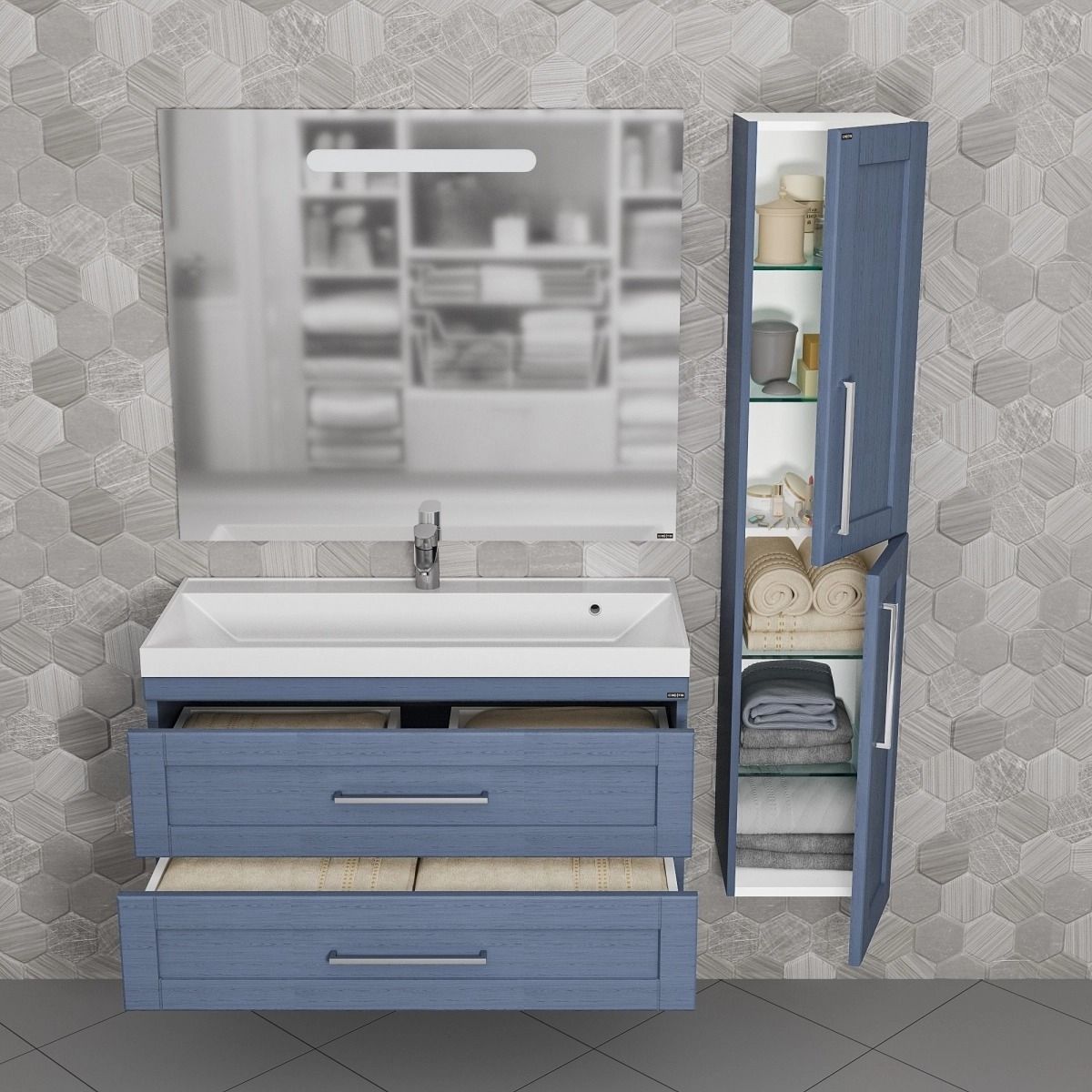 Тумба для комплекта СанТа подойдет как для просторной ванной комнаты, так и для небольшого помещения. Подвесной способ установки дает возможность не только визуально увеличить пространство, но и обеспечивает быстрый и удобный доступ для уборки.В производстве используют только качественные влагостойкие материалы (ВЛДСП), в составе которых полностью отсутствуют опасные вещества. Серия Венера отличается превосходным дизайном с соблюдением всех ключевых элементов современного стиля. Основным цветом, в котором выполнена тумба под раковину СанТа является синий, гармонирующий с большинством интерьерных решений. Тумба под раковину предусматривает удобную и вместительную систему хранения, состоящую из ящиков.Страной бренда СанТа является Россия, все товары производятся с выполнением соответствующих стандартов качества, что позволяет быть полностью уверенными в долговечности и надежности. Тумба для комплекта СанТа поможет сделать уютным любой интерьер и создать идеальную ванную комнату.