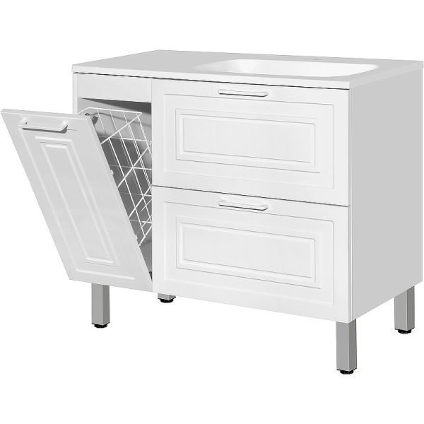 Тумба для комплекта Style Line Альба 90 R с бельевой корзиной роскошно впишется в дизайн любой ванной комнаты, будь то компактная ванная в многоэтажном доме или большой санузел в загородном коттедже. Напольный способ установки производится непосредственно на пол, при этом конструкция максимально устойчива при серьезных физических нагрузках.Компания Style Line использует при производстве высококачественные водоотталкивающие материалы (МДФ), соответствующие всем необходимым требованиям безопасности. Серия Альба отличается превосходным дизайном с соблюдением всех отличительных элементов современного стиля. Основным цветом, в котором выполнена тумба под раковину Style Line Альба является белый, отлично подходящий большинству дизайнерских решений. Тумба под раковину предусматривает удобную и вместительную систему хранения, состоящую из ящиков. Важные габариты изделия: ширина 89.8 см, глубина 45.2 см, высота 82 см.Страной бренда Style Line является Россия, все товары производятся с выполнением соответствующих стандартов качества, что позволяет быть полностью уверенными в долговечности и надежности. Тумба для комплекта Style Line Альба 90 R с бельевой корзиной поможет сделать уютным любой интерьер и создать идеальную ванную комнату.