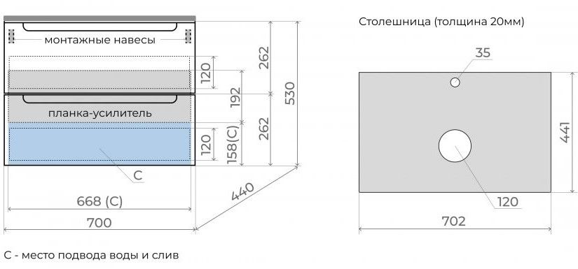 - Тумба подвесная со столешницей (ш/г/в): 700x450x530 мм