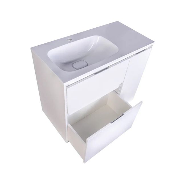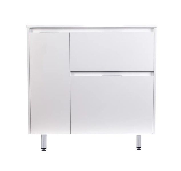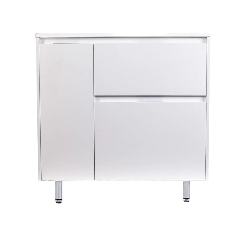 Тумба под раковину Style Line El Fante Барселона 90 Люкс Plus, 90 см, напольная, 2 ящика, с корзиной справа/слева, белыйОсновные характеристики:Тумба под раковину с выкатной бельевой корзиной