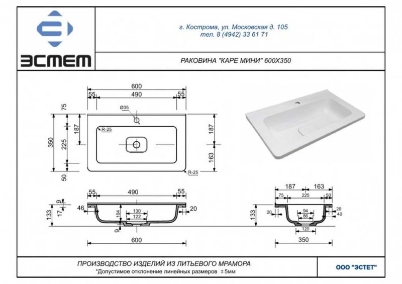 Тумба под раковину Style Line El Fante Бергамо мини 60 Люкс антискрейтч Plus, 60 см, напольная, белая, СС-00002307Основные характеристики:Тумба под раковину