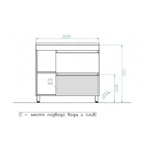 Система хранения: 3 выдвижных ящика, 1 распашная дверца.