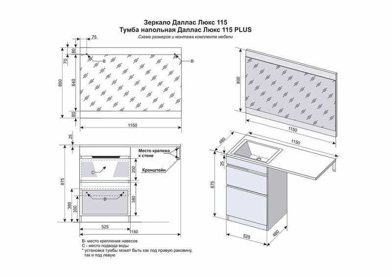 Тумба под раковину Style Line Даллас 115 СС-00000515 под стиральную машинку
